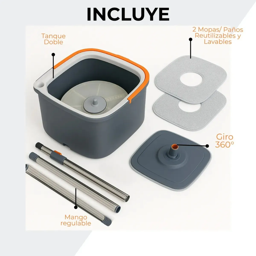 🧺 Balde Compacto de Doble Cámara: Fácil de almacenar y transportar, optimizando el espacio sin sacrificar la capacidad de limpieza.