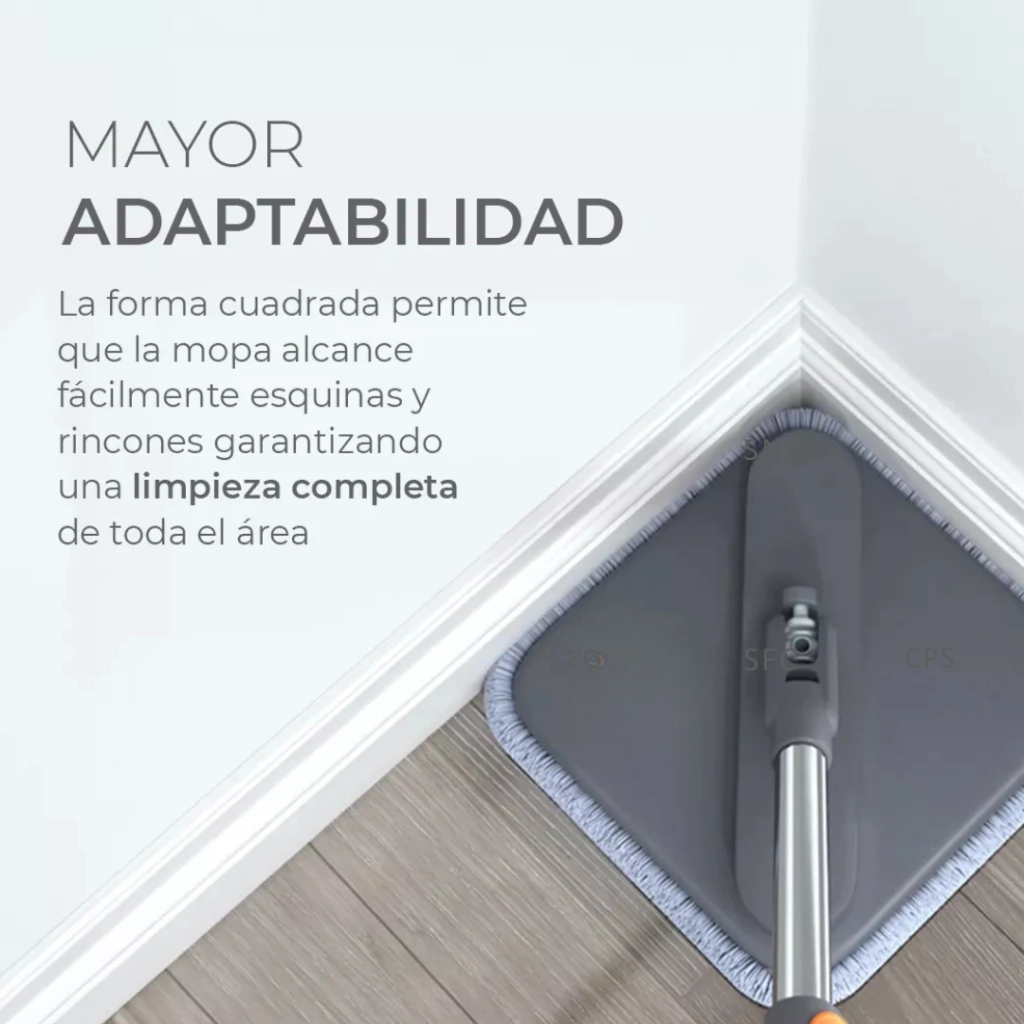 📐 Diseño de Mopa Plana y Ergonómica: La forma de la mopa maximiza la superficie de contacto para una limpieza más rápida y eficiente.